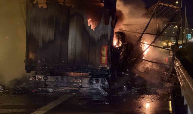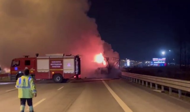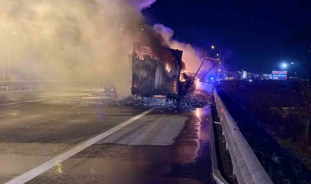 Kuzey Marmara Otoyolu'nda seyir halindeki tırın dorsesi alev topuna döndü