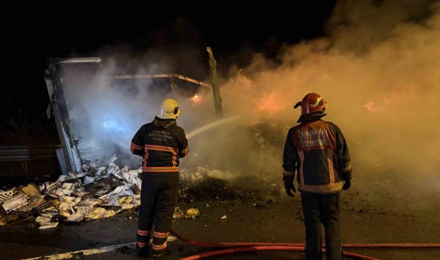 Kuzey Marmara Otoyolu Sakarya geçişinde seyir halindeki ambar malzemesi yüklü tırın dorsesi alev alev yandı. İtfaiye ekiplerinin uzun uğraşları neticesinde yangın kontrol altına alınarak söndürüldü.