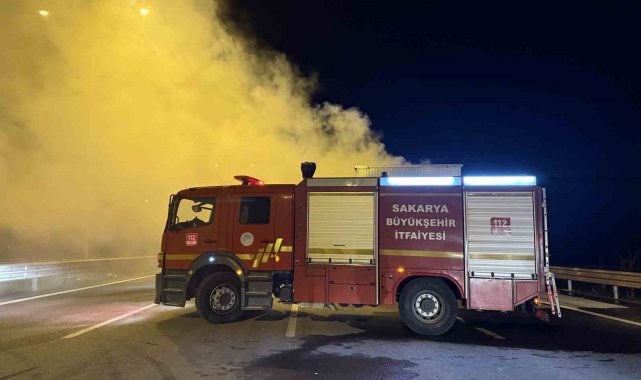 Edinilen bilgiye göre, Kuzey Marmara Otoyolu Akyazı Gişeler mevkii Ankara istikametinde seyir eden H.E. idaresindeki 64 FL 009 plakalı ambar malzemesi yüklü tırın dorsesinde henüz belirlenemeyen bir sebeple yangın çıktı. Yangını fark eden sürücü, çekiciyi dorseden ayırarak durumu 112 Acil Çağrı Merkezi'ne bildirdi. İhbar üzerine bölgeye çok sayıda itfaiye ve jandarma ekibi sevk edildi. Ekipler, adeta alev topuna dönen dorsedeki yangını kısa sürede kontrol altına alarak söndürdü. Soğutma çalışmalarının devam ettiği yangında trafik tek şeritten kontrollü olarak sağlanırken, olaya ilişkin inceleme başlatıldı.