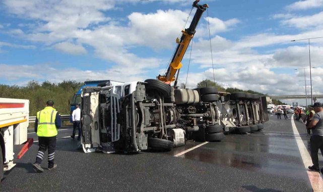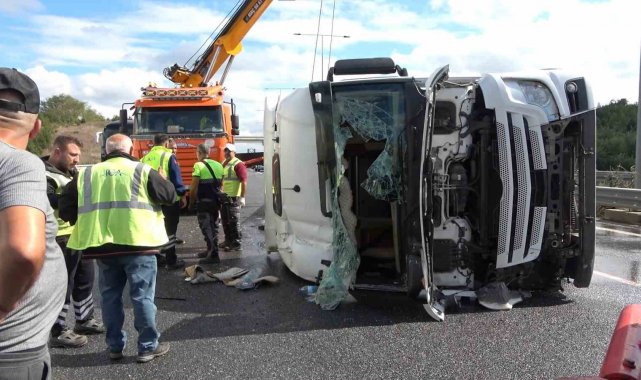 Kuzey Marmara Otoyolu'nda tır devrildi, trafik kilitlendi