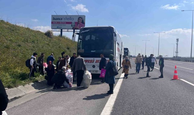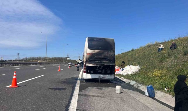 Kuzey Marmara Otoyolu Başakşehir mevkisinde İstanbul'dan Malatya'ya giden bir yolcu otobüsünün motor kısmında yangın çıktı. Kısa süreli korku yaşanan olayda herhangi bir yaralanma yaşanmazken, vatandaşlar farklı bir otobüs ile yolculuklarına devam etti. Otobüsten yükselen dumanlar ise cep telefonu kamerasına yansıdı.