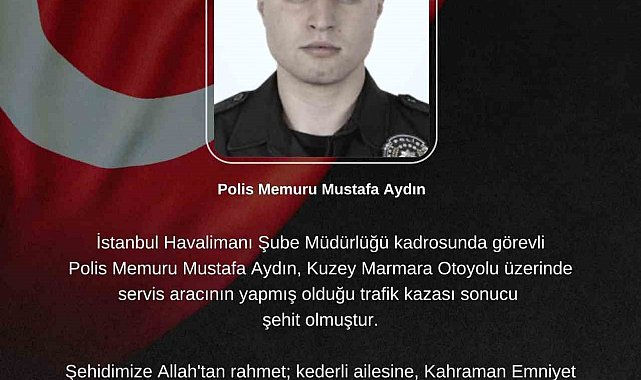 İstanbul Valiliği, Kuzey Marmara Otoyolu Başakşehir-Habipler bağlantı yolunda yaşanan kazada Mustafa Aydın isimli polis memurunun şehit olduğunu açıkladı.