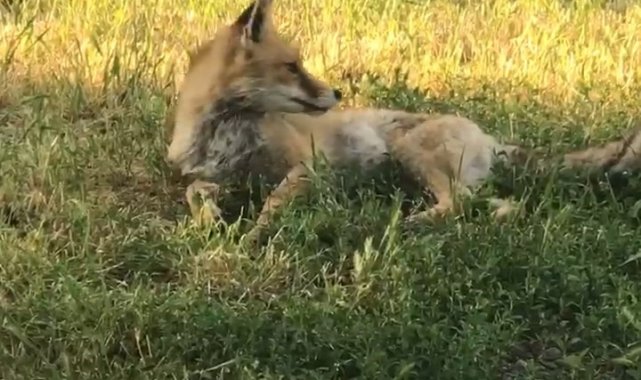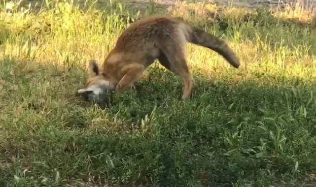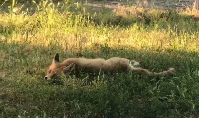 Dakikalarca bir ağacın gölgesinde yatan ve zaman zaman kendi kendine oynayan tilki daha sonra gözden kayboldu.
