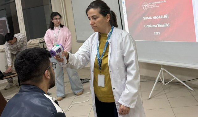 DÜZCE(İHA) – Düzce'nin Akçakoca ilçesinde KYK Erkek Öğrenci Yurdu'nda düzenlenen eğitimde sıtmanın erken tanı ve tedavisinin önemi anlatıldı; program kapsamında öğrencilere ateş ölçümü de yapıldı.