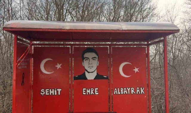 Samsun'un Ladik ilçesinde daha önce bir otobüs durağını Samsunspor renklerine boyayan Kaman ailesi, bu kez şehit Polis Memuru Emre Albayrak'ın babaevine giden yoldaki otobüs durağını şehidin anısına kırmızı-beyaza boyayıp, durağa şehidin ismini yazdı.