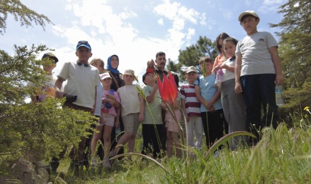 Spil Dağı Milli Parkı'nda açan laleler, Manisa'nın Turgutlu ve Akhisar ilçelerinden gelen öğrencilere tanıtılarak, bilgi verildi.