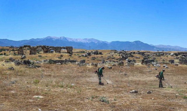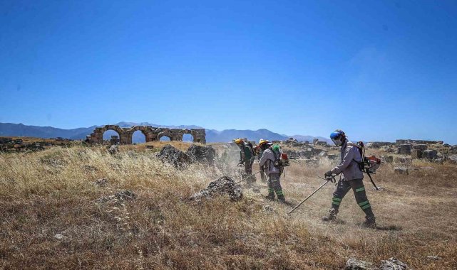 UNESCO Dünya Mirası Geçici Listesinde yer alan Laodikya Antik Kentinde, yangın tehlikesi oluşturabilecek kurumuş yabani otları temizledi.