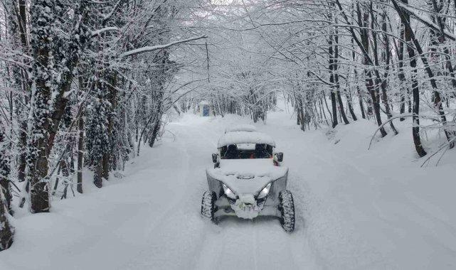Kocaeli genelinde etkili olan kar yağışı, özellikle yüksek kesimlerde muazzam görüntüler oluşturdu. Doğanın sunduğu bu görsel şöleni fırsat bilen adrenalin tutkunları, UTV araçlarıyla zorlu parkurlara meydan okudu. Lapa lapa yağan karın altında, beyaz örtüyle kaplanan orman yollarında ilerleyen vatandaşlar, hem karın tadını çıkardı hem de doyasıya eğlendi. Şehrin gürültüsünden uzak, tamamen doğayla iç içe gerçekleşen bu yolculukta, UTV araçlarının performansı ve karın sunduğu zorlu şartlar heyecanı ikiye katladı.