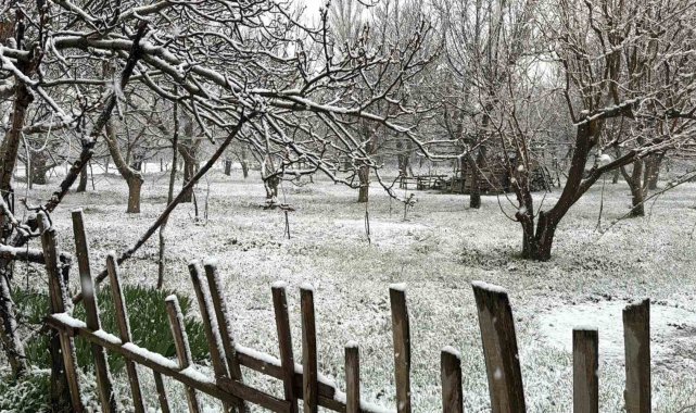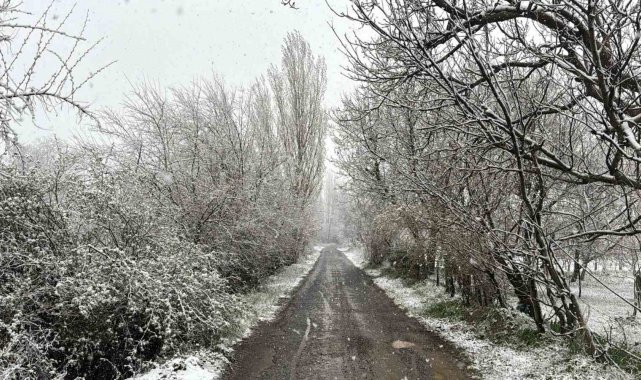 Afyonkarahisar'ın Çay ilçesinde lapa lapa yağan kar yağışı sonrası etraf beyaza büründü.