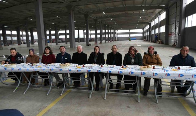 Lapseki kapalı pazar yerinde pazarcı esnafıyla kahvaltıda bir araya gelen B...