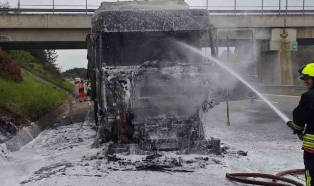 Yangın, sabah saatlerinde TEM Otoyolu'nun Akçakavak köyü mevkisinde meydana geldi. Edinilen bilgilere göre, M.Ç. (35) idaresindeki 67 LM 101 plakalı tırın sağ ön tekerleği patladı. Patlamanın ardından araçta yangın çıktı. Durumun bildirilmesi üzerine olay yerine itfaiye ekipleri sevk edildi. Ekiplerin hızlı müdahalesiyle yangın kısa sürede kontrol altına alındı. Yangın sebebiyle tır küle döndü.
