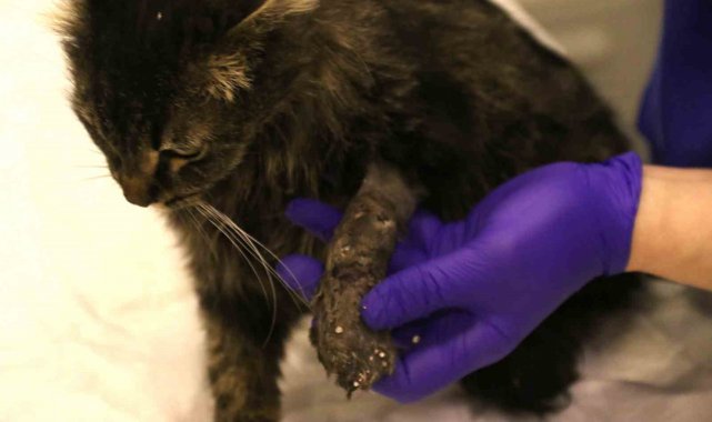 Lastikle patisi bağlanan kedi ayağını kaybedebilir