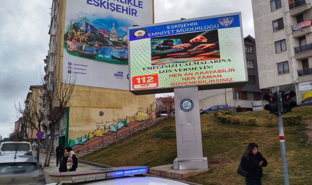 Eskişehir'de polis ekiplerince hazırlanan hırsızlık ve dolandırıcılık konulu dijital uyarı metinleri, kentteki LED ekranlara yansıtılmaya başlandı.