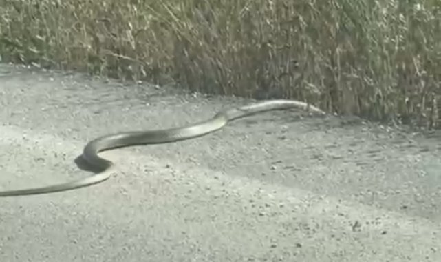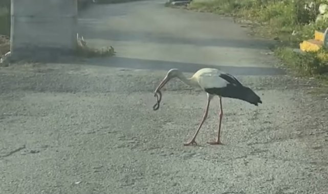 Bursa'da hava sıcaklığı sebebiyle ortaya çıkan yılanlar, vatandaşları tedirgin etti. Kimi itfaiye ekiplerini çağırıp yakalanmasını beklerken, kimi ise arabasından bile inmeden yoluna devam etti. Leylek köyü Karaağaç'ta bir leylek gördüğü yılanı tek hamle ile midesine indirdi. O anlar bir vatandaş tarafından saniye saniye kayda alındı.