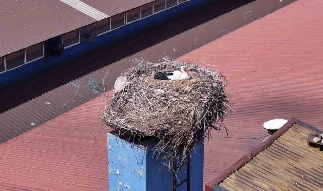 Leylekler yuvaya döndü, fabrikada üretime ara verildi