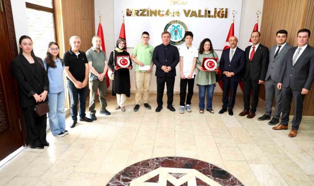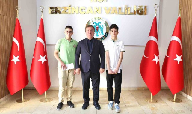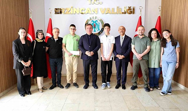 Erzincan Valisi Hamza Aydoğdu; İl Milli Eğitim Müdürü Hacı Ömer Kartal'ı, 2025 LGS'de tüm soruları doğru yanıtlayarak 500 tam puanla Türkiye birincisi olan öğrenciler Mustafa Selim Kağan ve Kaan Ölmez'i, ailelerini ve okul yöneticilerini makamında kabul etti.