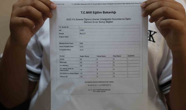 15 Haziran 2025 tarihinde yapılan Ortaöğretim Kurumlarına Öğrenci Seçme Sınavı (LGS) sonuçları bugün açıklandı. Açıklanan sonuçlara göre Şehit Eyyüp Oğuz Anadolu İmam Hatip Lisesi öğrencisi Şevval Ece Kılınçer, Şehit Önder Pınar Ortaokulu öğrencisi Yiğit Bulut ve Mezre Ortaokulu öğrencisi Zümra Keklik, 500 tam puan alarak Türkiye birincisi oldu. Başarı sırrının planlı ve azimli çalışmak olduğunu dile getiren birincilerde Yiğit Bulut, hedefinin uçak mühendisi olmak istediğini ifade etti. İlerde yapacağı projeler ile dışa bağımlılığı azaltmak istediğini aktaran Bulut, en büyük isteğinin ise milli ve yerli ürünler yapmak olduğunu vurguladı.