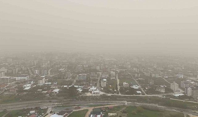 Libya üzerinden kuvvetli rüzgarla birlikte Türkiye'ye giriş yapan çöl tozu ülkenin en güneyinde yer alan Hatay'da etkisini gösterdi. Havadan çekilen görüntülerde çöl tozunun şehri içine aldığı görüntülendi.