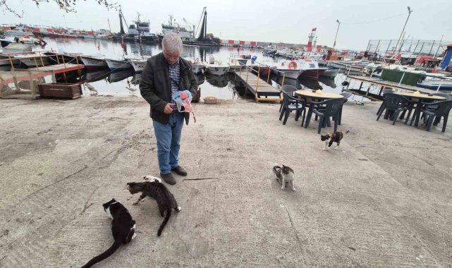 Balıkçı Erdal Coşkunçay, yıllardır bu hayvanları beslediklerini belirterek, "Burada elimizden geldiğince kedilere, kazlara, iki köpeğimize bakmaya çalışıyoruz. Sabah tekneler yanaştığında hep birlikte yolumuzu gözlüyorlar. Akşam gitmeden de besliyoruz. Barakamızda küçük yavrular var, büyüyene kadar koruma altına alıyoruz" dedi.