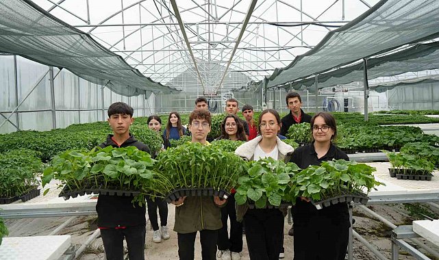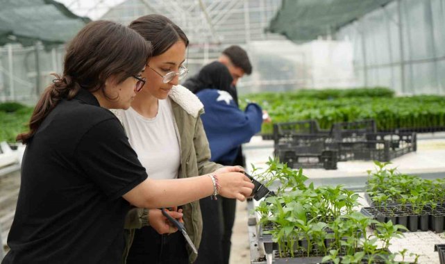 2024'te kurulan yaklaşık 850 metrekarelik serada eğitim gören öğrenciler, bu yıl domates, biber, salatalık gibi 12 tür, 39 çeşit 200 bin fide üretimi yaptı. Fideleri çiftçilere satan öğrenciler, üretimi 1 milyon adede çıkarmayı hedefliyor.