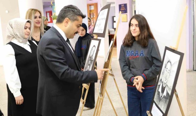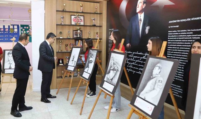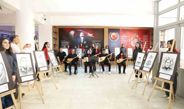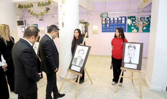 Lise öğrencileri, şehitlerin resmini çizdikleri eserlerle sergi açtı