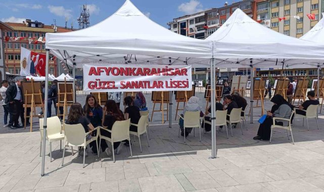 Afyonkarahisar'da lise öğrencilerinin açtığı resim sergisi vatandaşlardan tarafından büyük ilgi gördü.