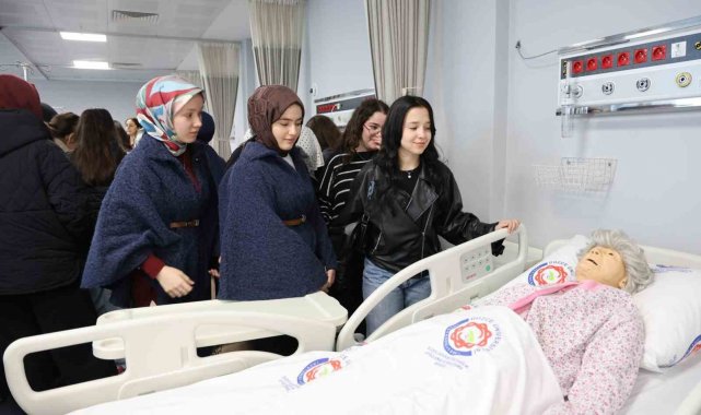 Düzce Mevlana Kız Mesleki ve Teknik Anadolu Lisesi öğrencileri, öğretmenleri eşliğinde Düzce Üniversitesi'ni ziyaret ederek akademik birimler hakkında bilgi aldı. İki öğretmen eşliğinde 47 öğrencinin katıldığı program kapsamında öğrenciler, Sağlık Bilimleri Fakültesi, Sağlık Hizmetleri Meslek Yüksekokulu ve Eğitim Fakültesi'ni gezdi. Birimlerin sunduğu akademik ve uygulamalı eğitim imkanlarını yakından tanıyan öğrenciler ilk olarak Sağlık Bilimleri Fakültesi ve Sağlık Hizmetleri Meslek Yüksekokulu'nu ziyaret etti. Sınıflar, uygulama alanları ve simülasyon laboratuvarlarını, acil müdahale, hemşirelik bakım, laboratuvarları hakkında detaylı bilgi alan öğrenciler; sağlık eğitiminde kullanılan ileri teknoloji destekli eğitim yöntemlerini yakından gözlemleme fırsatı buldu. Eğitim Fakültesi ziyareti kapsamında öğrenciler, öğretmenlik programlarının yapısı, ders programları, sınav dönemler, çift anadal ve yan dal programları ile Erasmus imkanları hakkında bilgi aldı.