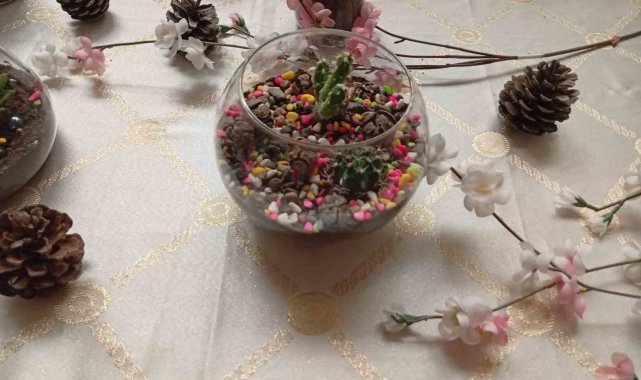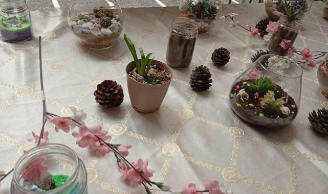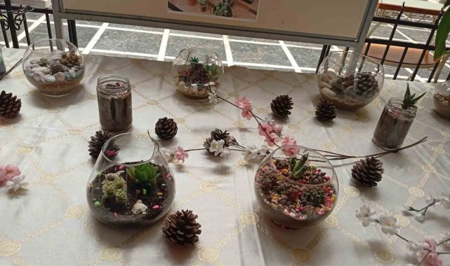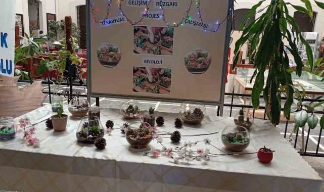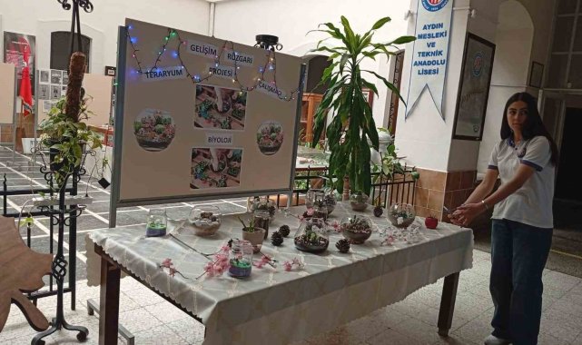 Aydın Mesleki ve Teknik Anadolu Lisesi (ATL) öğrencileri 'Gelişim Rüzgarı Projesi' kapsamında biyoloji dersinde eğitici bir etkinliğe imza attı. Biyoloji Öğretmeni Nejla Karahan rehberliğinde gerçekleştirilen çalışmada öğrenciler, "teraryum" adı verilen cam fanuslar içerisinde minyatür ekosistemler tasarladı. Cam içerisinde yer alan ve dekoratif öğelerden oluşan küçük ekosistem bahçeleri, okul içerisinde hazırlanan köşe ile görücüye çıktı.