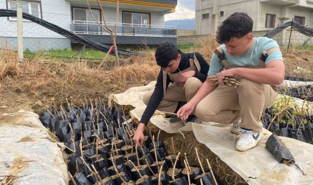 Tarım Alanı Şefi Mehmet Dereli gözetiminde yürütülen çalışmalarda öğrenciler, iki kapalı serada yaklaşık 5 bin adet acı ve tatlı Emcelli biberi fidesini toprakla buluşturdu. Aynı zamanda öğrenciler, yine yaklaşık 5 bin adet tüplü bağ fidanı üretimi yaparak uygulamalı eğitimlerini pekiştirdi.