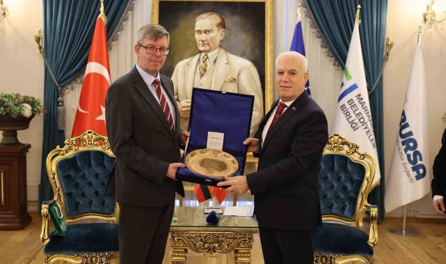 Bursa Büyükşehir Belediye Başkanı Mustafa Bozbey, Litvanya Ankara Büyükelçisi Marius Janukonis'i Tarihi Belediye Binası'nda ağırlayarak kültür, yenilenebilir enerji ve atık su yönetimi konularında fikir alışverişinde bulundu.