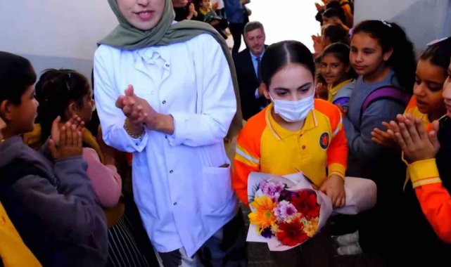 Şanlıurfa'da lösemi teşhisi konulan ve hastalığını yenen 4'üncü sınıf öğrencisi, okuluna döndüğü ilk gün arkadaşları ve öğretmenleri tarafından görkemli bir törenle karşılandı.