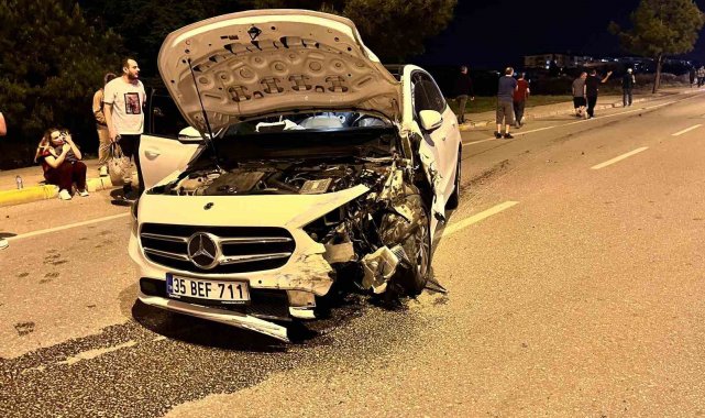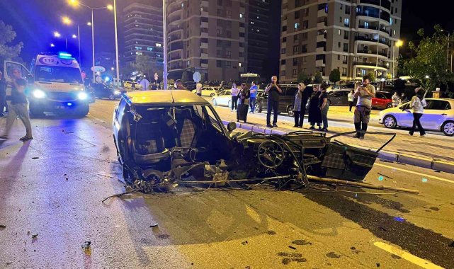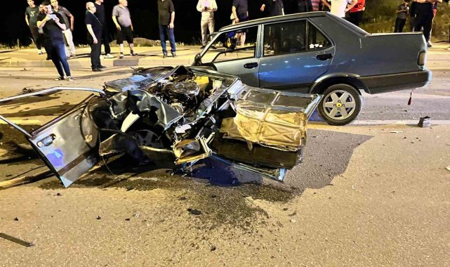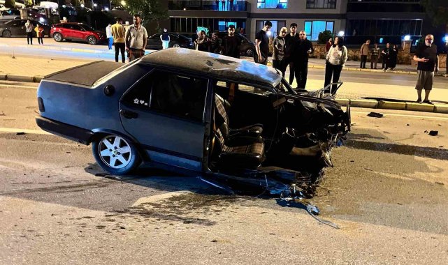 Denizli'de kontrolsüz kavşaktan U dönüşü yapmak isteyen otomobile, cadde üzerinde seyir halinde olan lüks araçla çarptı. U dönüşü yapmak isteyen Tofaş'ın ikiye bölündüğü kazada 2 sürücü yaralandı.
