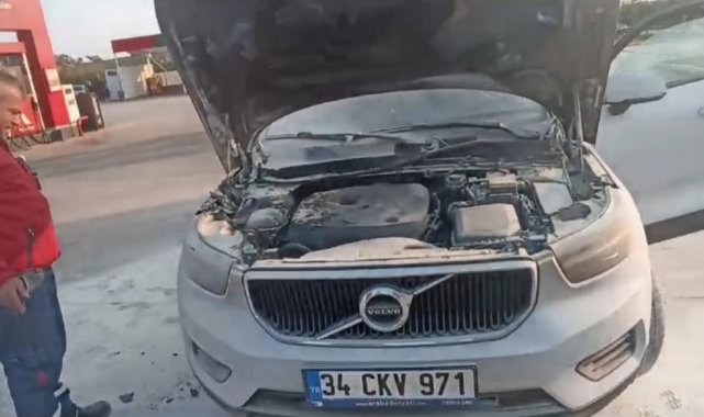 Lüks otomobil dumanlar çıkarak akaryakıt istasyonuna girdi