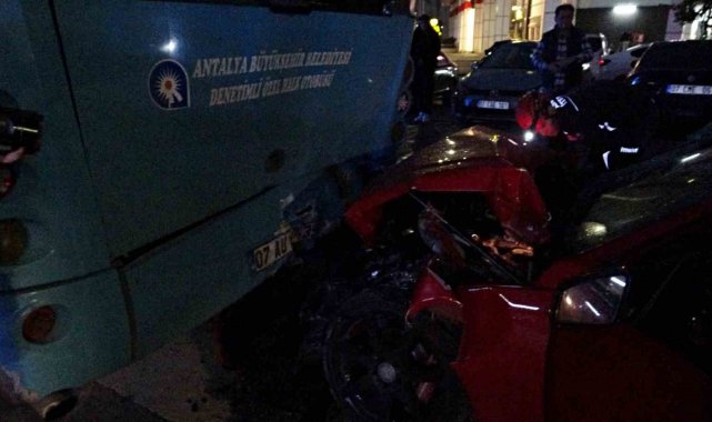 Kaza, saat 19.00 sıralarında Konyaaltı ilçesi Uluç Mahallesi Çamlık Caddesi ile 1117. Sokak kesişiminde meydana geldi. Edinilen bilgiye göre, Çamlık Caddesi'nde seyir eden Yılmaz N.'nin kullandığı 34 AYR 038 plakalı lüks otomobil, yol kenarında park halindeki 07 AU 0435 plakalı özel halk otobüsüne çarptı. Kazayı gören çevredeki vatandaşların 112 Acil Çağrı Merkezi'ne ihbarı üzerine olay yerine polis, sağlık ve itfaiye ekipleri sevk edildi. Vatandaşların yardımını ile hurdaya dönen araçtan çıkartılan sürücü Yılmaz N., sağlık ekiplerinin olay yerindeki ilk müdahalesinin ardından ambulansla hastaneye kaldırıldı.