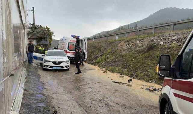 Kazada sürücü Onur E. ile araçta yolcu olarak bulunan eşi Nurhayat E. (42) ve çocukları Ali Demir E. (8) ile Defne E. (13) yaralandı.