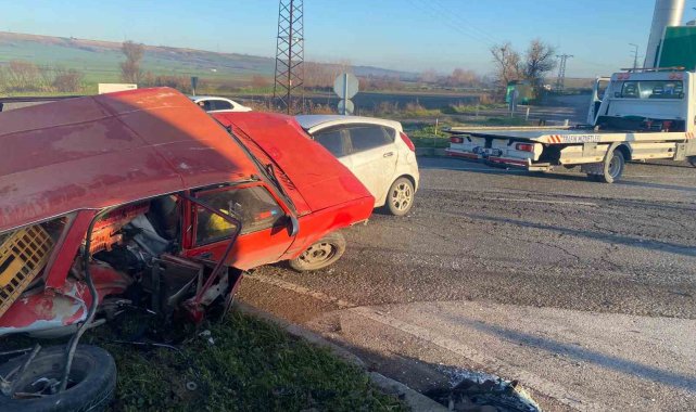 Lüleburgaz'da kavşakta çarpışan otomobillerin sürücüleri yaralandı