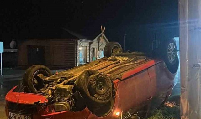 Edinilen bilgiye göre, akşam saatlerinde seyir halindeki 39 TR 807 plakalı otomobil, yağış nedeniyle kayganlaşan yolda sürücüsünün kontrolünden çıktı. Karşı şeride geçen araç ters dönerken bir süre sürüklendi ve kapalı durumdaki akaryakıt istasyonunun yanında durabildi. Otomobilde bulunan iki kişi cam kırıklarına bağlı hafif sıyrıklarla kazayı atlatırken, sağlık ekipleri tarafından ayakta tedavi edildi. Olay yerinde polis ekipleri güvenlik önlemi alarak kazayla ilgili inceleme başlattı.