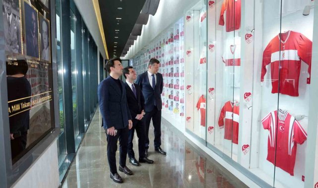 TFF Başdanışmanı Yusuf Yerkel, Riva'daki TFF Müzesi'ni de gezen Milli Eğitim Bakan Yardımcısı Muhammet Bilal Macit'e üzerinde isminin yazılı olduğu bir A Milli Takım forması takdim etti.