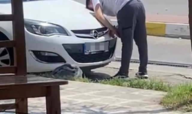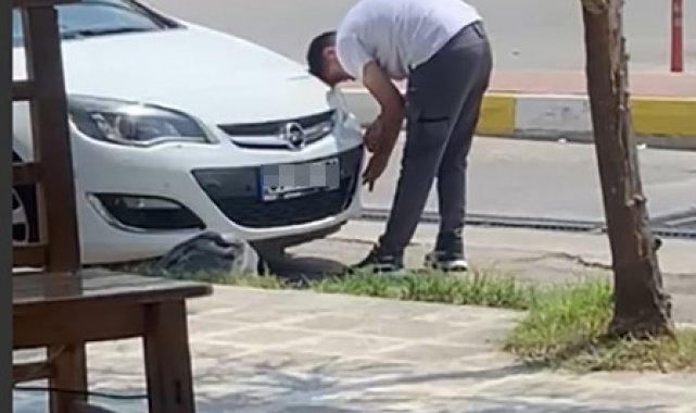 Adana'da uyuşturucu bağımlısı olduğu öne sürülen bir kişi, otomobilin kaputuna yaslanıp değişik hareketler sergiledi.