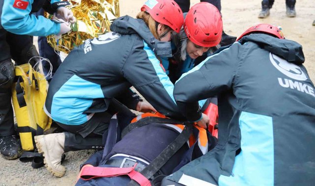 Yaralıların ekiplerin koordineli özverili çalışmasıyla sahra hastanesine nakillerinin sağlandığını belirten Gümüşhane UMKE Sorumlusu Neşe Öztürk, "Bu aslında tatbikattan ziyade bir eğitim tatbikatıydı. 20 tane yaralıyla çalıştık. Maden ocağının biraz daha dış alanında bir alana sahra hastanesi kurduk. 4 tane sarı hasta, 2 tane kırmızı hasta, geriye kalan 14 tane hasta da yeşil olacak şekilde sahra hastanesine naklini sağladık. Bizim şehrimiz madenleriyle bilinen bir şehir. Biz de bu nedenle konu olarak maden göçüğü, maden patlamasını tercih etmek istedik. Alan içerisine girme yetkisi olan tek birim maden arama kurtarma birimi. Onlar kendi çıkardıkları hastaları maden ocağının ağzından UMKE ekiplerine teslim ettiler. Hep beraber koordineli bir şekilde çalışıp Sahra Hastanesine nakillerini sağladık" diye konuştu.