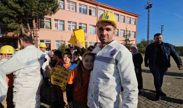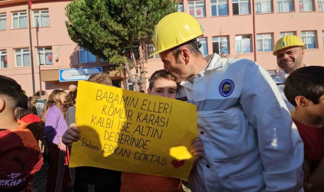 Zonguldak'ın Kilimli ilçesinde 4 Aralık Dünya Madenciler Günü, duygu yüklü bir buluşmaya sahne oldu. Yerin metrelerce altından çıkan madenciler, üzerlerinde iş kıyafetleri çocuklarının okuluna ziyaret gerçekleştirdi. Babalarını karşılarında gören çocukların sevinci, madencilerin tüm yorgunluğunu unutturdu.