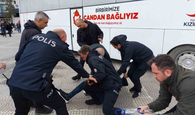 Gözaltına alınan şahıs, ifadesi alınmak üzere polis merkezine götürüldü.