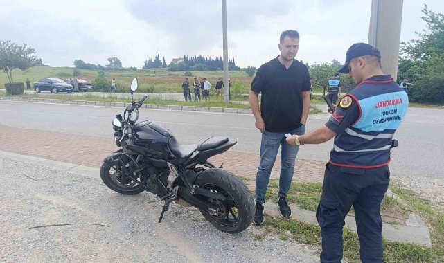 Diğer taraftan yolun kapalı olduğunu merak ederek motosikletle çalışma yapılan yere gelen bir vatandaşa, jandarma ekiplerince motosikletinin plakası olmadığı için cezai yaptırım uygulandı.