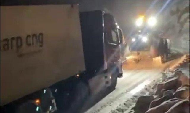 Mahsur kalan doğalgaz yüklü tır kurtarıldı