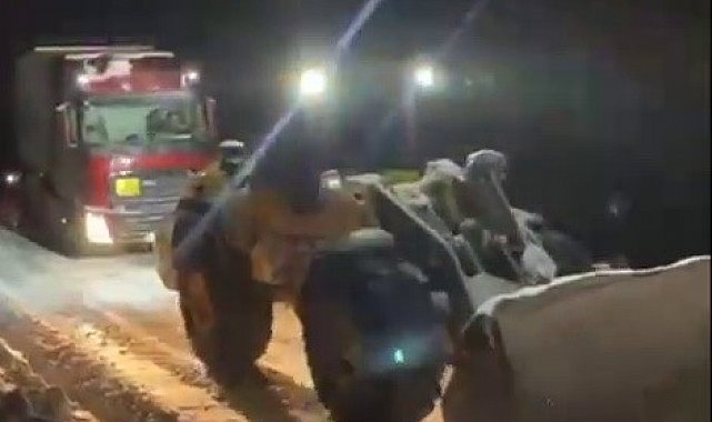 Adıyaman'ın Sincik ilçesinde etkili olan yoğun kar yağışı nedeniyle yolda mahsur kalan CNG (sıkıştırılmış doğalgaz) taşıyan tır, belediye ekiplerinin çalışmalarıyla kurtarıldı.