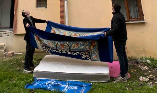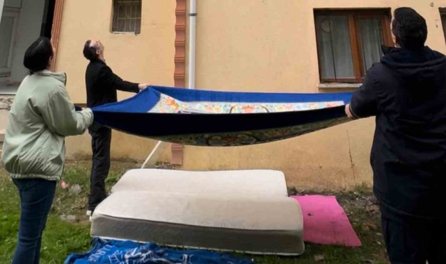 Mahsur kalan kedi için yatak taşıyıp battaniye gerdiler