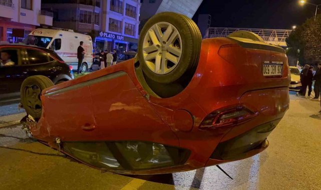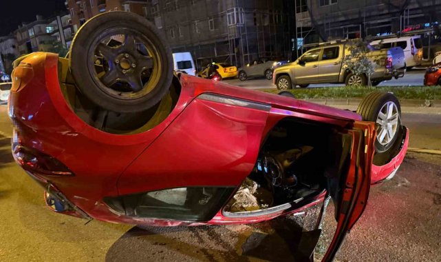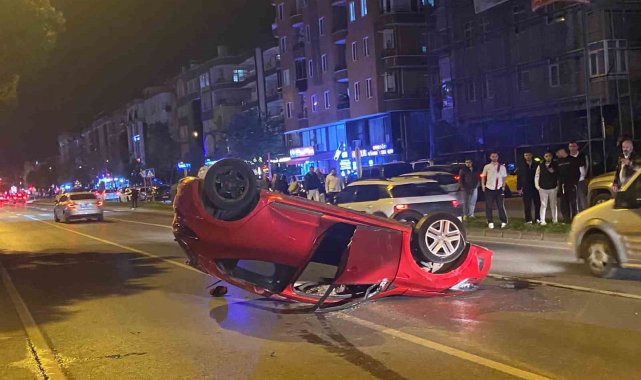 Makas atarak iki araca çarpan sürücü takla attı: 1 yaralı