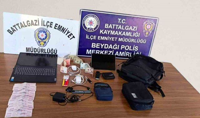 Battalgazi ilçesi Cevherizade Mahallesi'nde meydana gelen ikinci olayda ise M.B.'nin park halindeki aracından 1 adet laptop bilgisayar,1 adet elektronik tablet, 1 adet sırt çantası, 2 adet cüzdan içerisinde 2 bin 800 TL, 7 Dolar, 40 Euro, 5 Sudi Riyali döviz, 7 adet elektronik malzemenin çalındığı ihbarı üzerine çalışma yapan ekipler olayın zanlısı B.A.'yı yakalayarak gözaltına aldı. B.A.'nın polis merkezindeki işlemlerinin sürdüğü bildirildi.