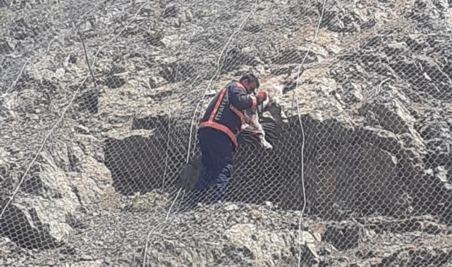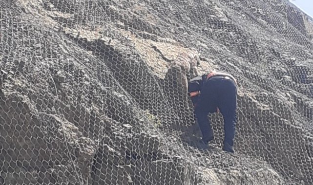 Malatya'nın Pütürge ilçesinde heyelan riskine karşı yerleştirilen çelik ağlara takılan iki yaban keçisi, itfaiye ekipleri tarafından kurtarıldı.