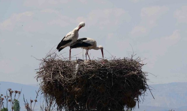 Malatya'da baharın müjdecisi leylekler yuvalarına dönüyor